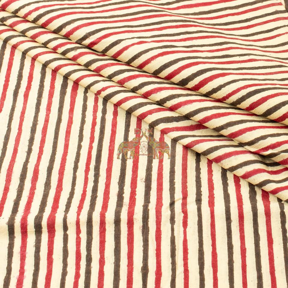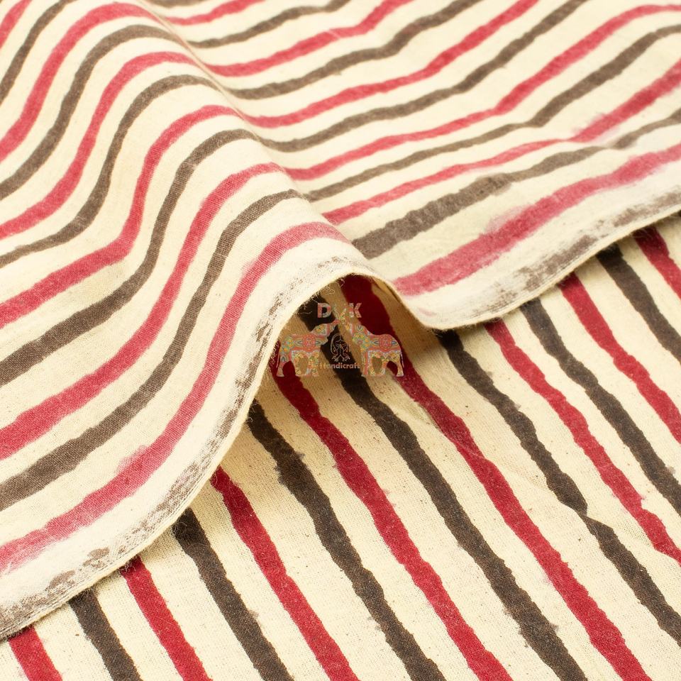 ผ้าพิมพ์ลายบล็อกอินเดีย ผ้าลายทางพิมพ์ลายบากรู สำหรับทำเสื้อผ้า ผ้าฝ้ายเนื้อนุ่ม ลายพิมพ์บากรู