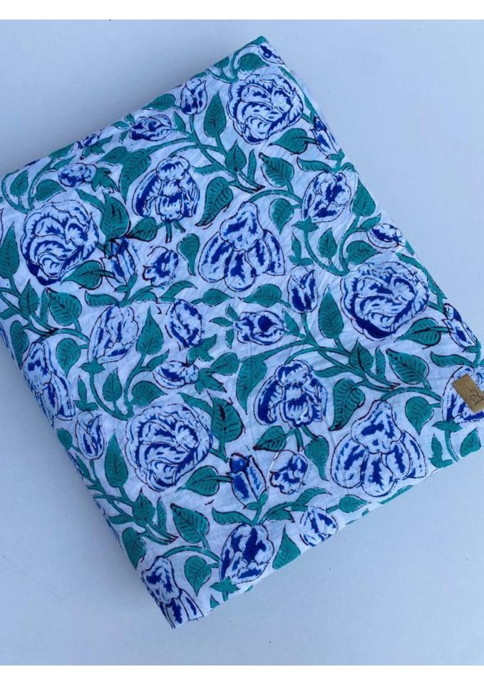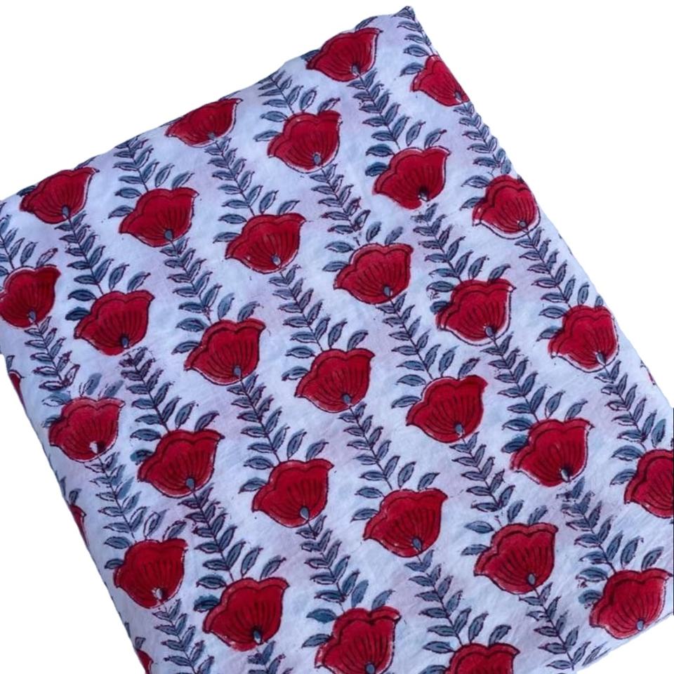ผ้าฝ้ายพิมพ์ลายบล็อกอินเดีย ผ้าลายดอกไม้โบฮีเมียน ผ้าควิลท์อินเดีย ผ้าฝ้ายแท้ทำมือสำหรับผู้หญิง