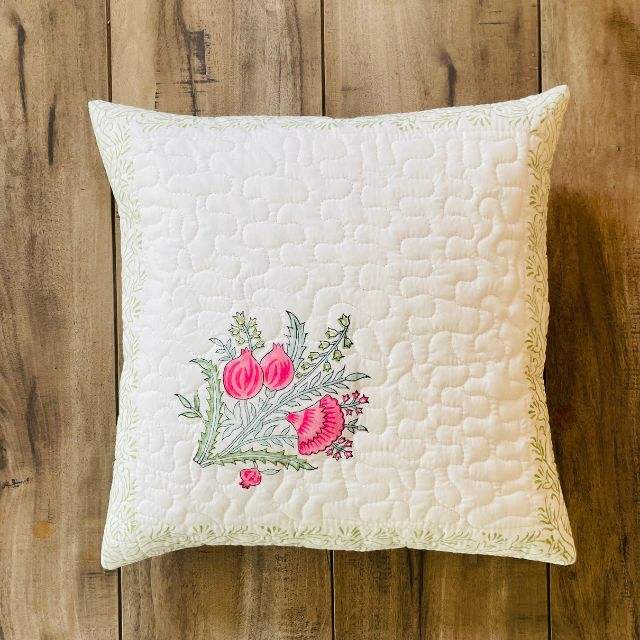 ปลอกหมอนอิงผ้าฝ้ายพิมพ์ลายบล็อกอินเดีย ขนาด 40 x 40 ซม. รูปทรงสี่เหลี่ยมจัตุรัส