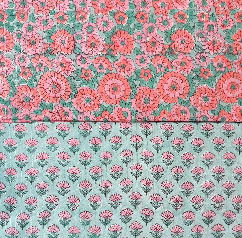 ผ้าพิมพ์ลายดอกซางานาเรรีสำหรับเสื้อผ้าที่ยั่งยืน ผ้าจากเมืองชัยปุระที่เป็นมิตรกับสิ่งแวดล้อม สำหรับเสื้อเด็ก ชุดผู้หญิง และกระเป๋า