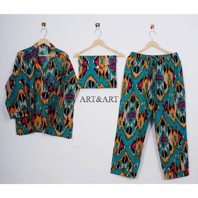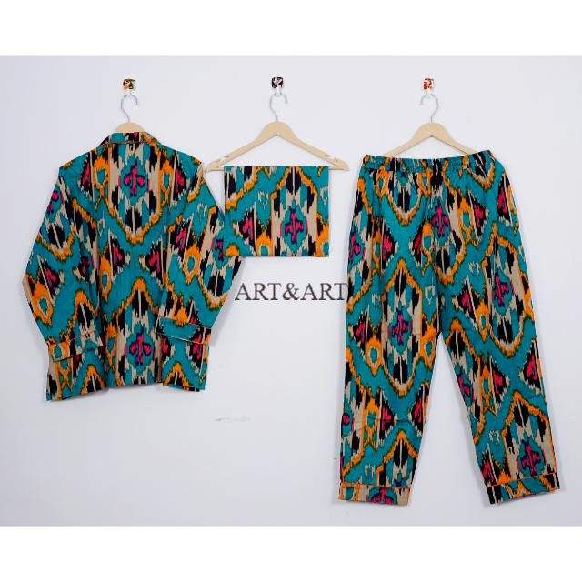ชุดนอนผ้าฝ้ายพิมพ์ลายบล็อกอินเดียสำหรับผู้หญิง 100% ระบายอากาศได้ดี ลายพิมพ์อิคัตสไตล์วินเทจ ชุดลำลองสำหรับฤดูร้อน เหมาะสำหรับเป็นของขวัญให้เพื่อนเจ้าสาว