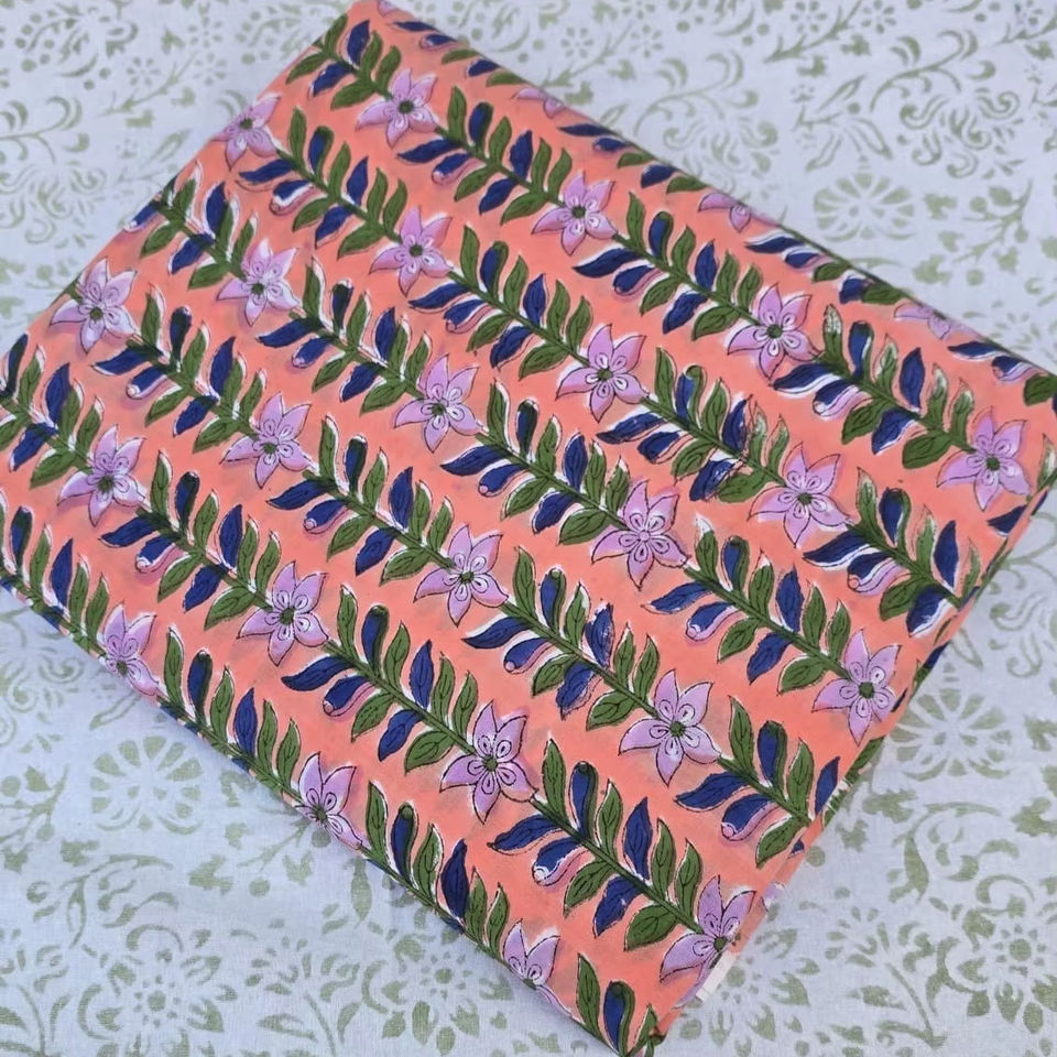 ผ้าฝ้ายพิมพ์ลายบล็อกอินเดียแบบดั้งเดิม เป็นมิตรกับสิ่งแวดล้อม แห้งเร็ว น้ำหนักปานกลาง ลายดอกไม้ สำหรับตัดเย็บเสื้อผ้า งานฝีมือสไตล์โบฮีเมียน