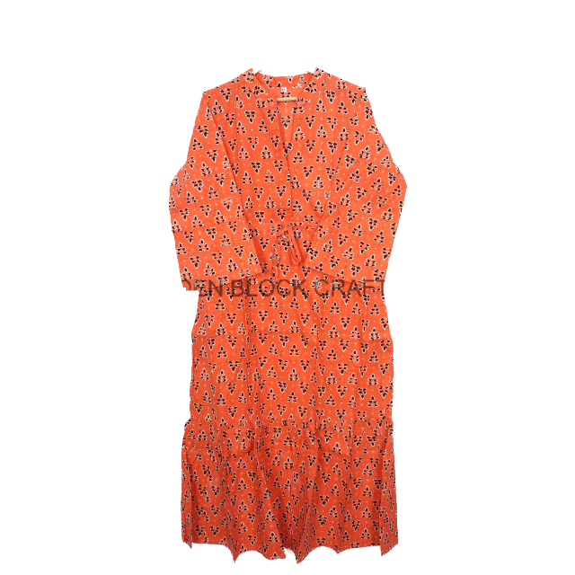 ชุดเดรสคลุมเข่าคอวีมีกระดุม3/4สำหรับผู้หญิงผ้าคอตตอนพิมพ์ลายแบบ100% เป็นมิตรกับสิ่งแวดล้อมชุดเดรสคอวีสำหรับฤดูร้อน