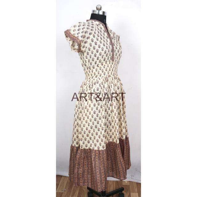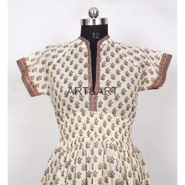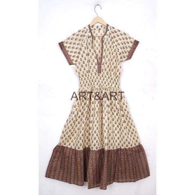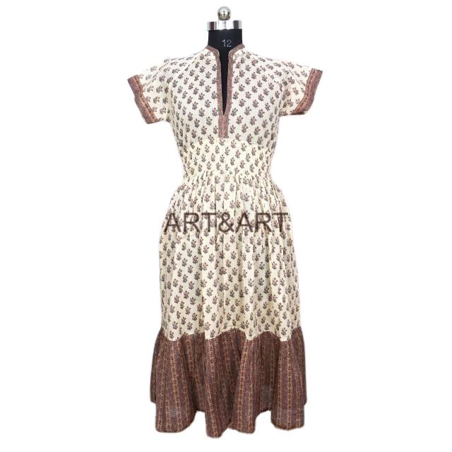 Indian Hand Block Printed Midi Dress For Women Beautiful Hand Made Comfortable Midi Party Wear Dress For Ladies