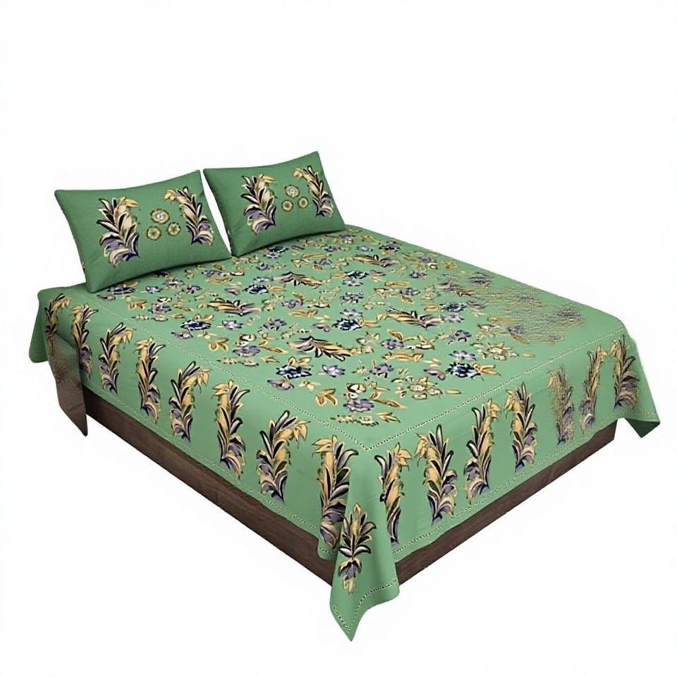 ผ้าปูที่นอนลายพิมพ์มือแบบอินเดีย HEAVENBIRDS คุณภาพพรีเมียม ผลิตจากผ้าฝ้าย พร้อมปลอกหมอน 2 ใบ 300 เส้นด้าย
