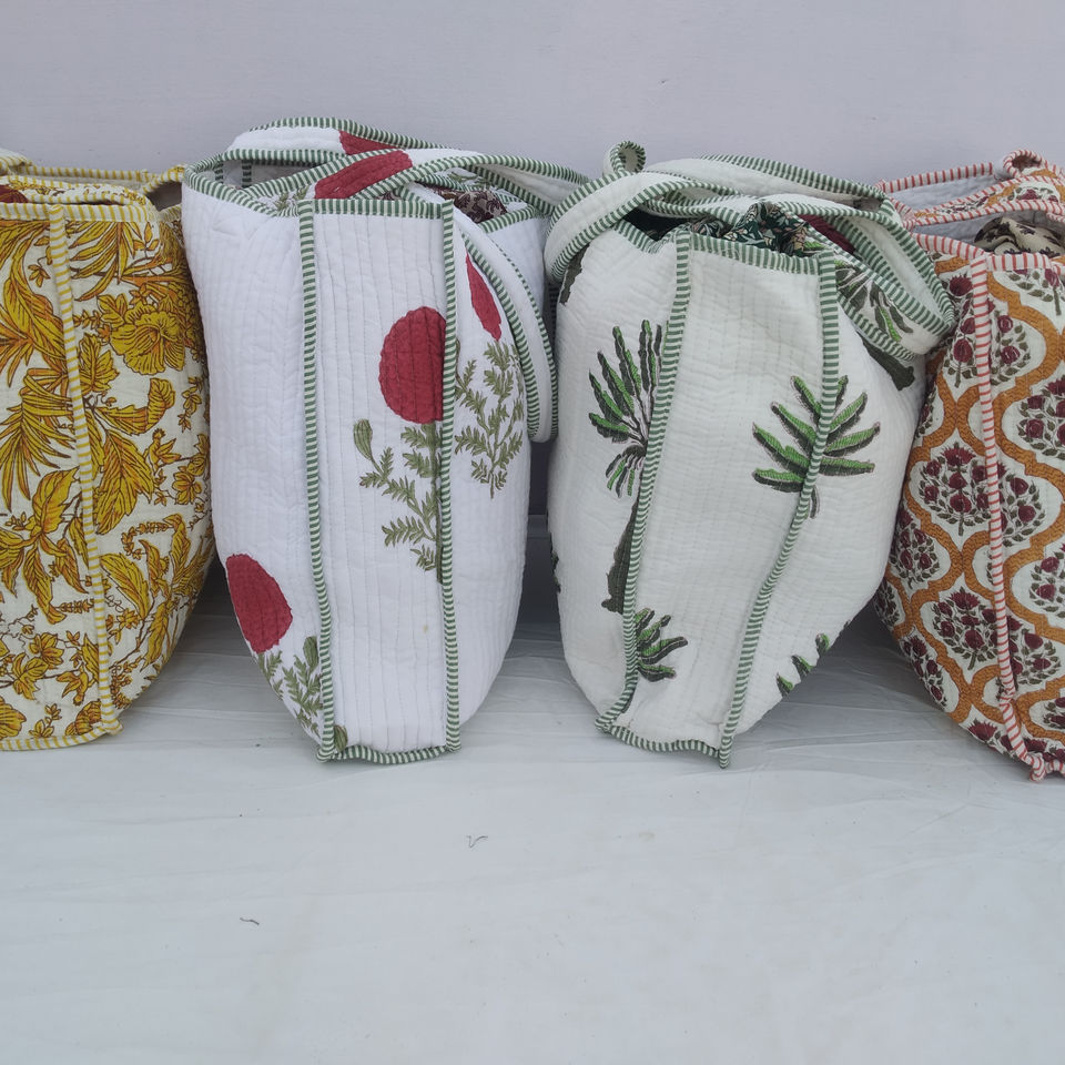 กระเป๋าถือสะพายไหล่ผ้าไนลอนลายเรขาคณิตหลากสีพิมพ์ลายด้วยมือแบบอินเดียสำหรับผู้หญิง