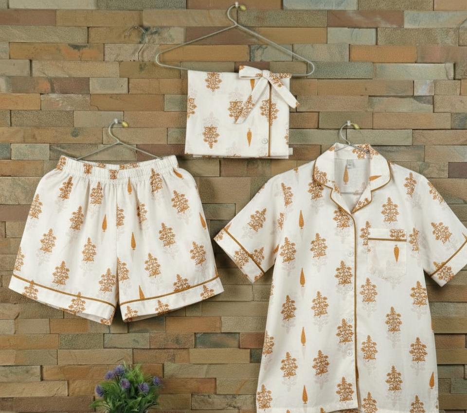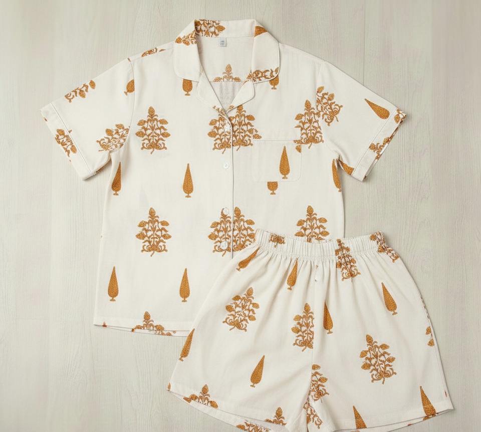 ชุดนอนผ้าฝ้ายทอมือลายพิมพ์ดอกไม้สไตล์อินเดีย แขนยาว สำหรับผู้หญิงและผู้ชาย แฟชั่นฤดูร้อน แบบปรับแต่งได้