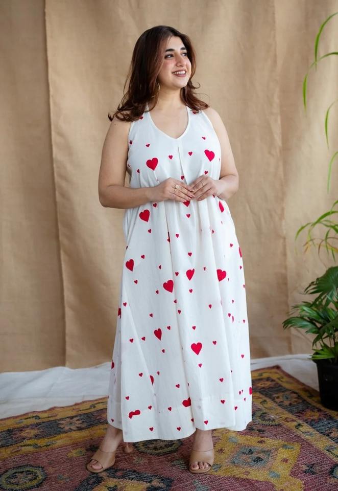 ชุดเดรสผ้าฝ้ายพิมพ์ลายดอกไม้สไตล์อินเดียชุดลำลองทันสมัยสำหรับงานแต่งงานงานทอมือรอบเอวธรรมชาติ