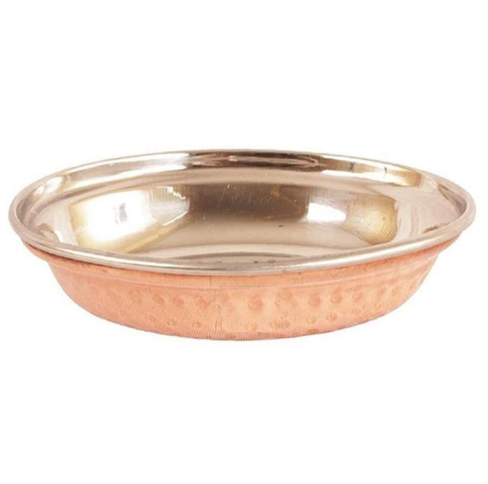ชามโลหะสำหรับเสิร์ฟอาหารทำจากทองแดงทำด้วยมืออินเดีย