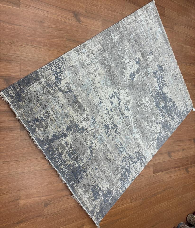 พรมขนแกะผ้าไหมแบบถักมือสไตล์อินเดียขนาด8x10ฟุตพรมปูพื้นผืนใหญ่ทันสมัยหรูหราสำหรับห้องนอนห้องนั่งเล่น