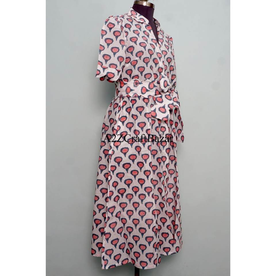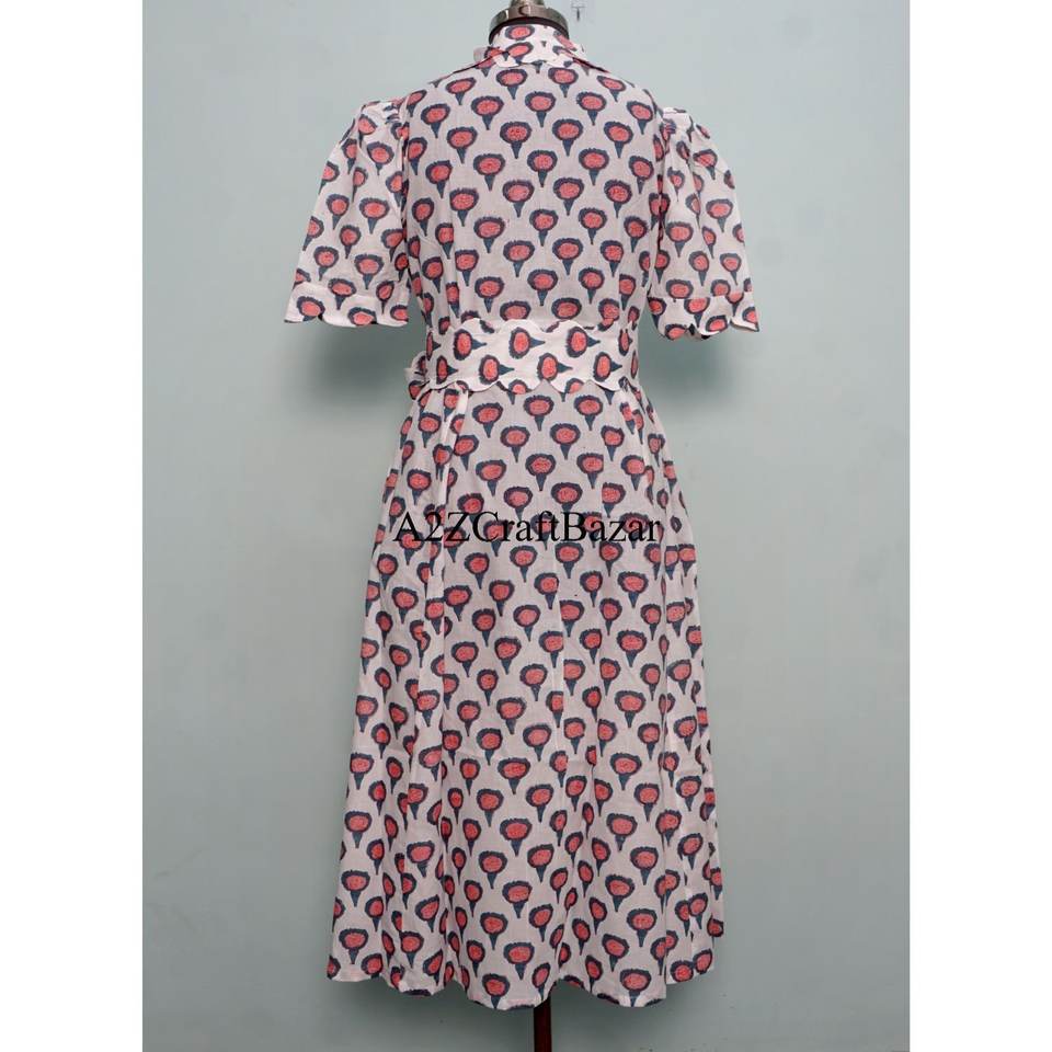 ชุดเดรสผ้าฝ้ายทำมือสไตล์อินเดียสำหรับผู้หญิง ลายดอกพิมพ์บล็อกด้วยมือ น่ารัก สไตล์ลำลอง ใส่ได้ทุกวัน ใส่ไปงานปาร์ตี้ได้