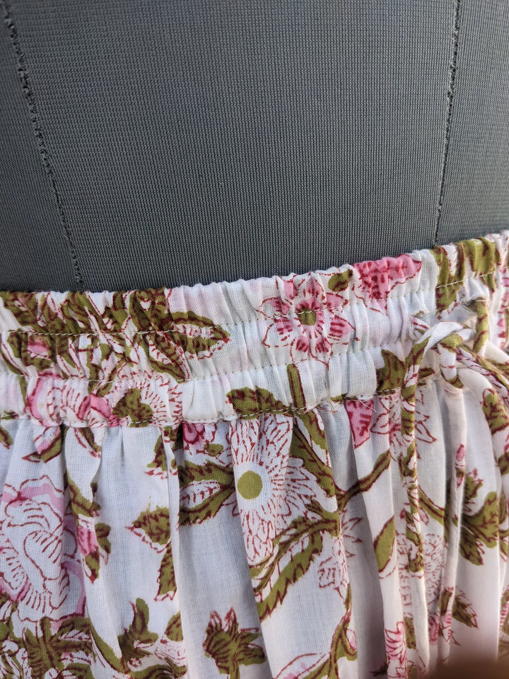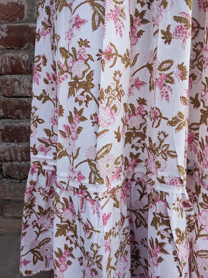 ชุดเดรสกระโปรงยาวพิมพ์ลายด้วยมือแบบอินเดียสำหรับผู้หญิง ชุดเดรสพิมพ์ลายด้วยมือสำหรับผู้หญิง กระโปรงยาวผ้าฝ้ายสีขาว ราคาโรงงาน