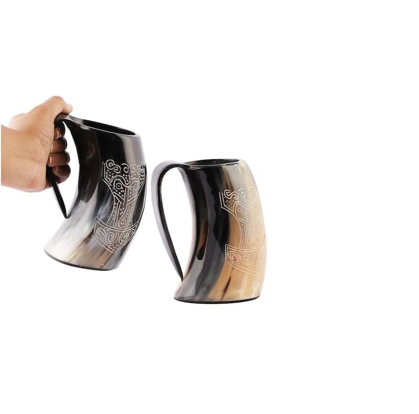แก้วน้ำทรงเขาสัตว์แบบวiking ทำมือจากอินเดีย คุณภาพดีเยี่ยม ของแท้จากธรรมชาติ เหมาะสำหรับเบียร์ ไวน์ กาแฟ ใช้ในบ้าน โรงแรม หรือบนโต๊ะอาหาร