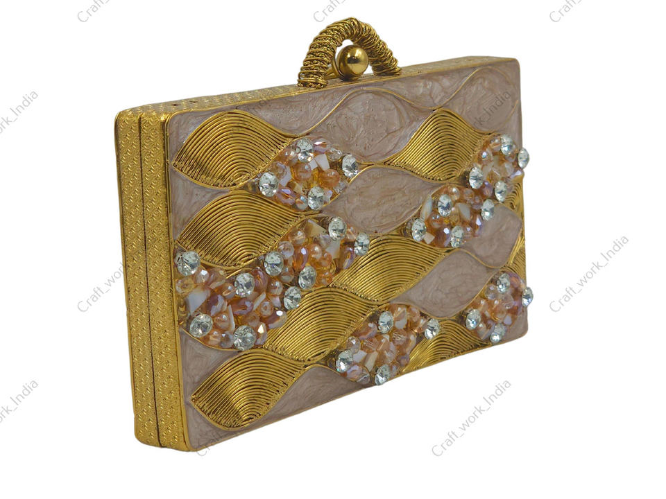 กระเป๋าคลัทช์งานฝีมืออินเดียทำจากทองเหลืองประดับมุกและคริสตัลสุดหรูสำหรับงานปาร์ตี้