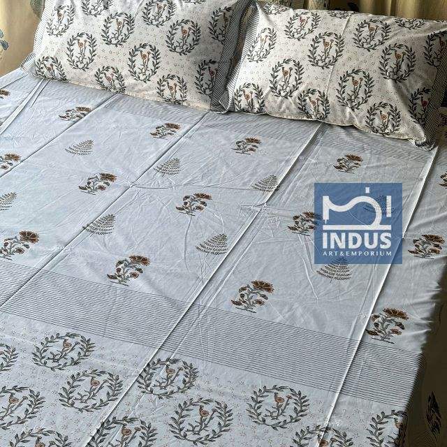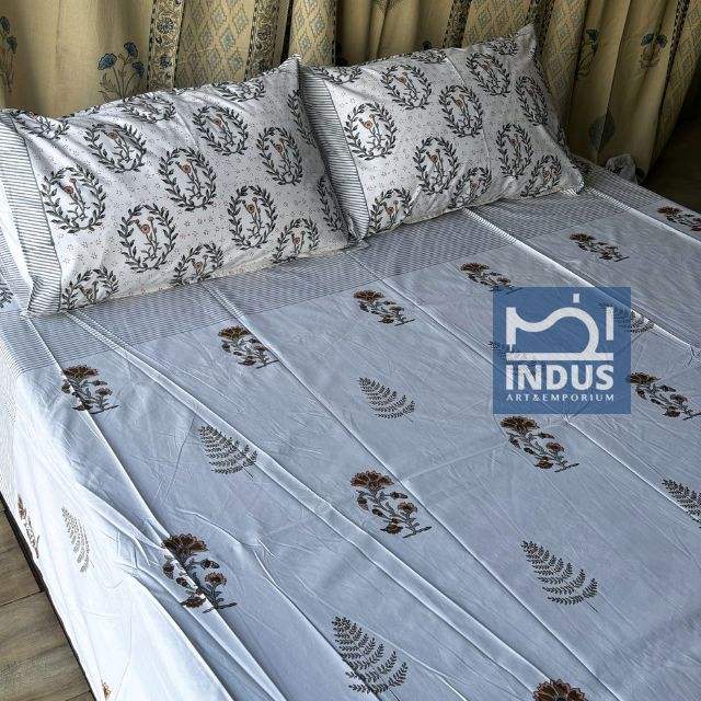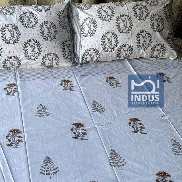 Sanganeri ชุดเครื่องนอนผ้าปูเตียงพิมพ์ลายทำมือสำหรับชาวอินเดียผ้าปูที่นอนพร้อมปลอกหมอน