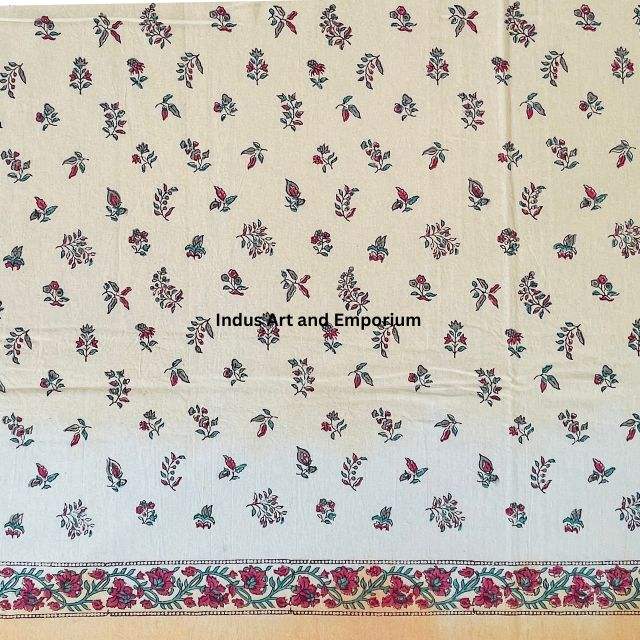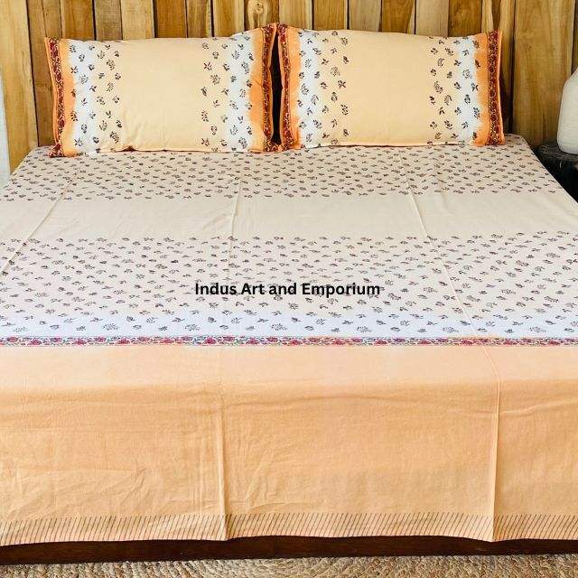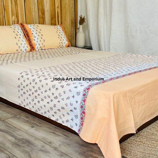 ชุดเครื่องนอนผ้าปูที่นอนพิมพ์ลายด้วยมือแบบอินเดีย ซางาเนรี พร้อมปลอกหมอน