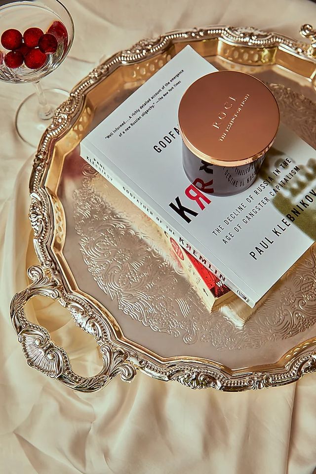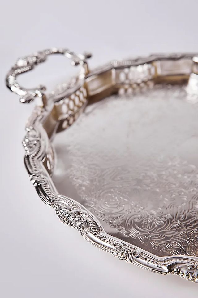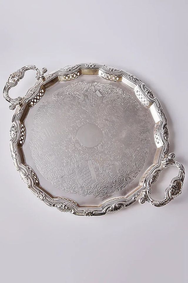 ถาดเสิร์ฟทองเหลืองเคลือบเงาทำด้วยมือสำหรับเสิร์ฟเครื่องดื่มและอาหารว่างงานอินเดีย
