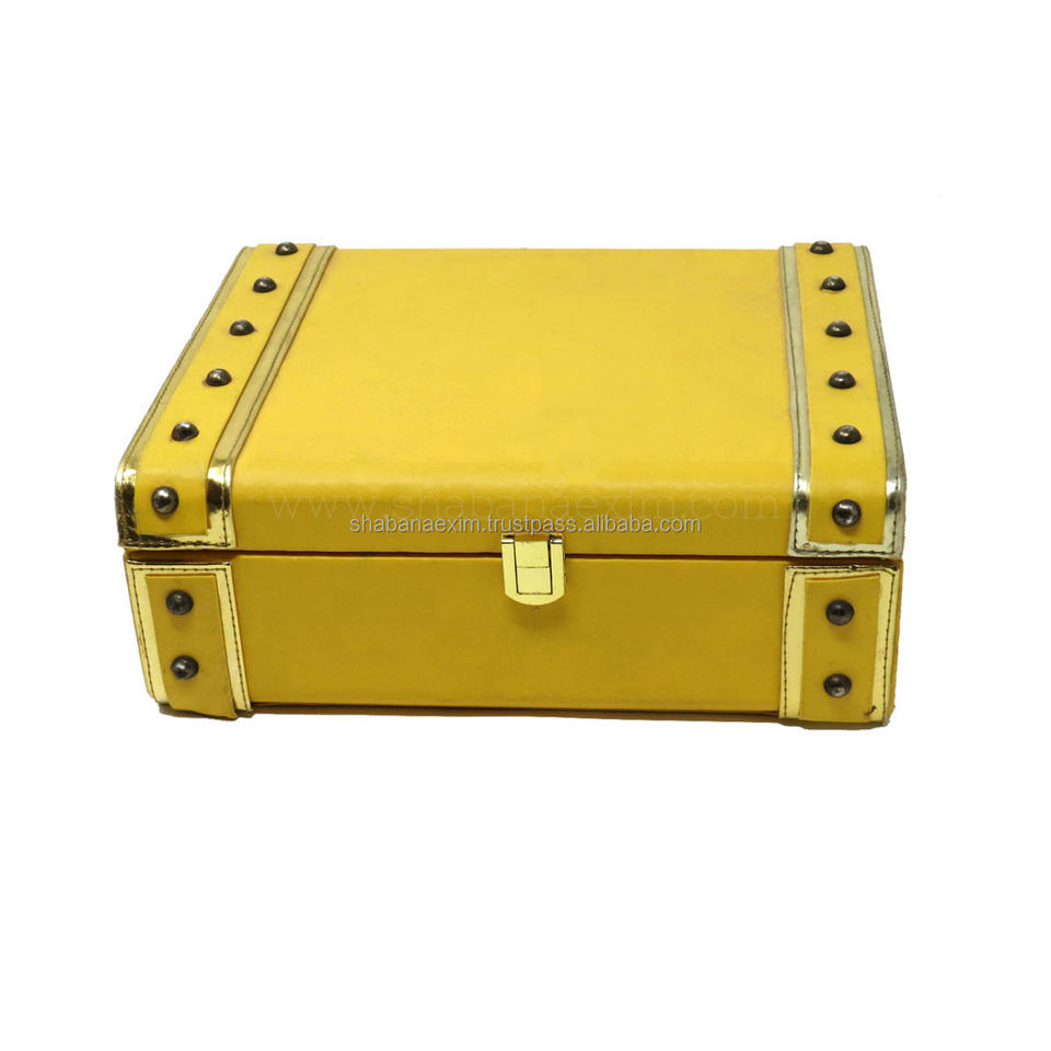 กล่องใส่เครื่องประดับลายพิมพ์สีเหลือง ทำจากไม้เอ็มดีเอฟ งานฝีมืออินเดีย สำหรับจัดเก็บเครื่องประดับสำหรับผู้หญิง