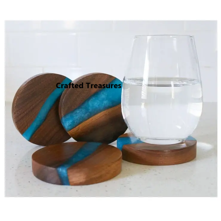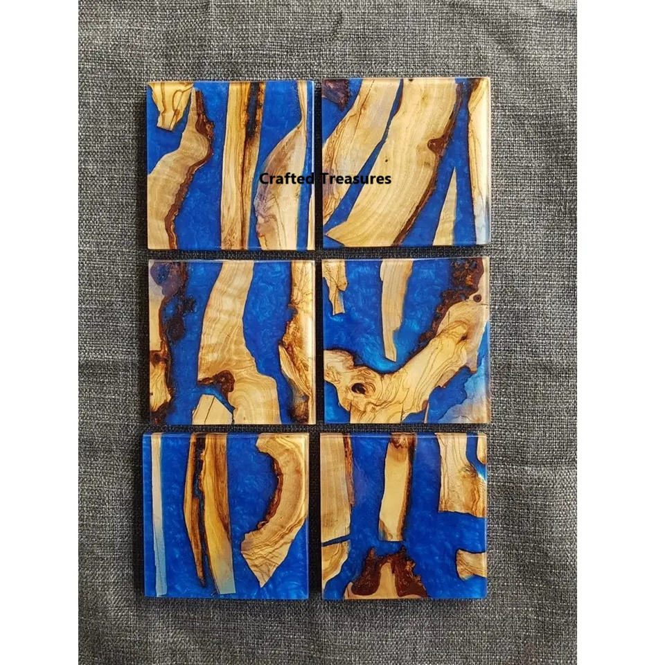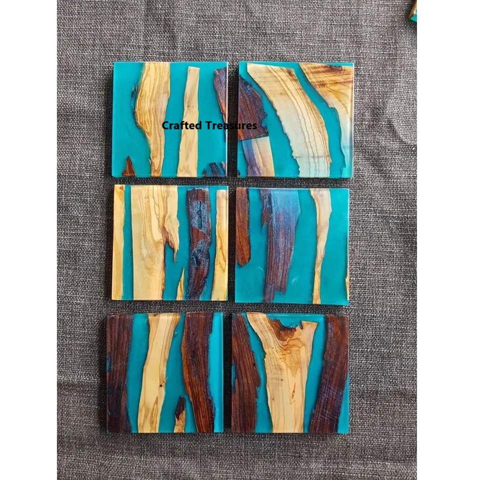 แผ่นรองแก้วไม้เรซิ่นคอลเลกชันใหม่แผ่นรองแก้ว6ชิ้นแผ่นรองถ้วยชาเครื่องใช้บนโต๊ะอาหาร