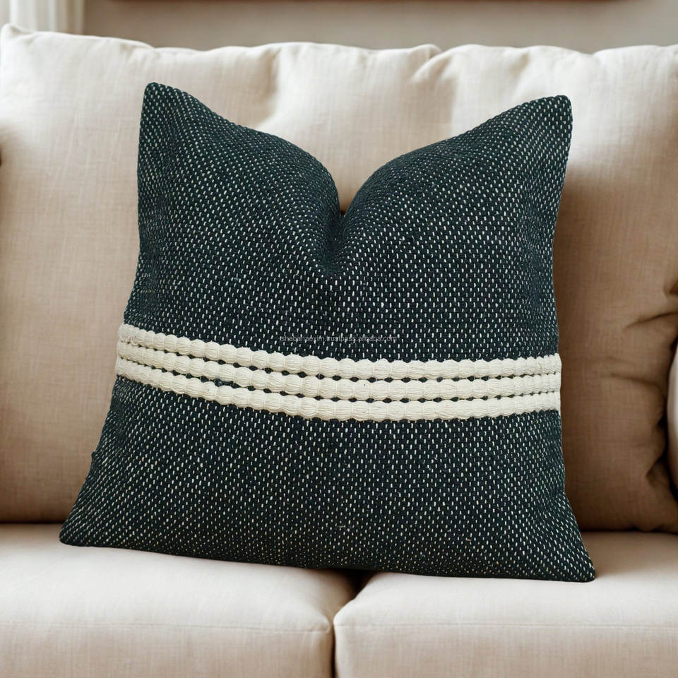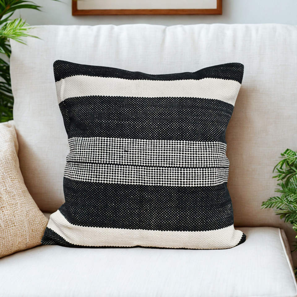 ปลอกหมอนอิงทอมือแบบอินเดีย ลายทางสีดำ คลาสสิก ขนาด 18x18 นิ้ว สำหรับโซฟา เตียงนอน ขายส่ง