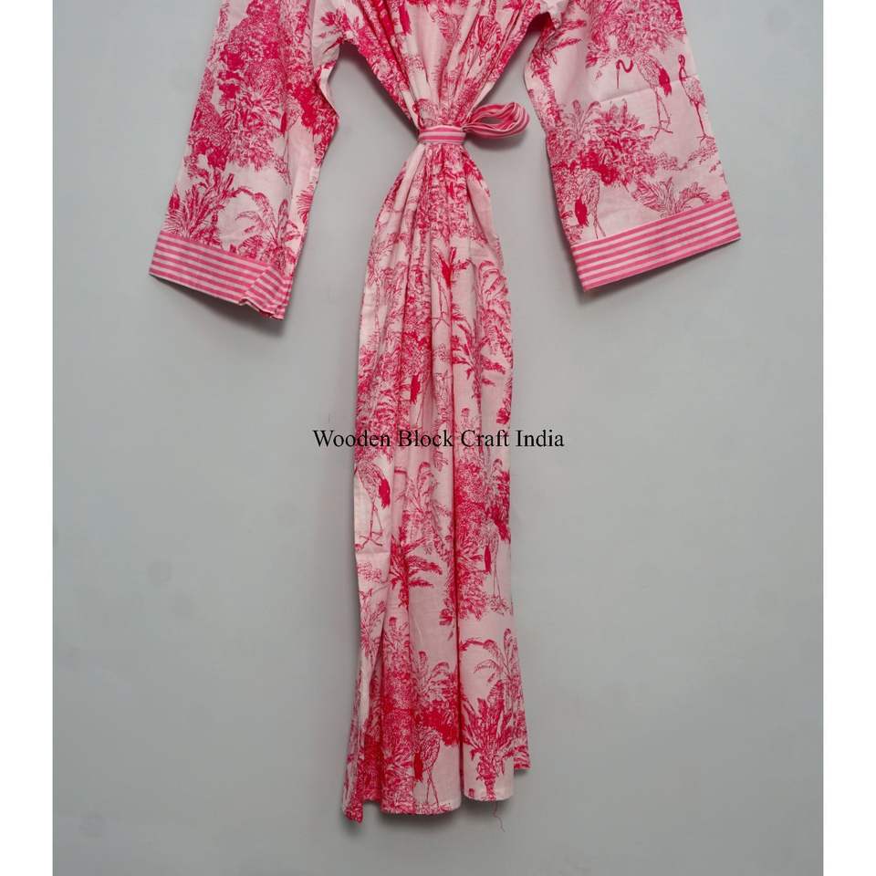 ชุดกิโมโนผ้าฝ้ายทำมือจากอินเดีย 100% สำหรับผู้หญิง ลายดอกไม้ ชุดนอน ฟรีไซส์ สำหรับใช้ในบ้านและชุดนอนในฤดูใบไม้ผลิ