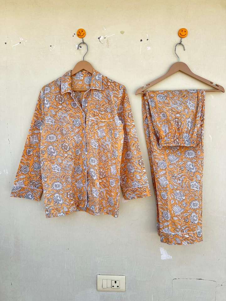 ชุดนอนผ้าฝ้ายป๊อปลินพิมพ์ลายดอกไม้ ทำมือจากอินเดีย 100% สำหรับผู้หญิง สไตล์ลำลอง หรูหรา เหมาะสำหรับฤดูหนาว ฤดูร้อน ฤดูใบไม้ร่วง ฤดูใบไม้ผลิ ผลิตแบบ ODM