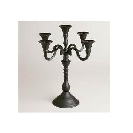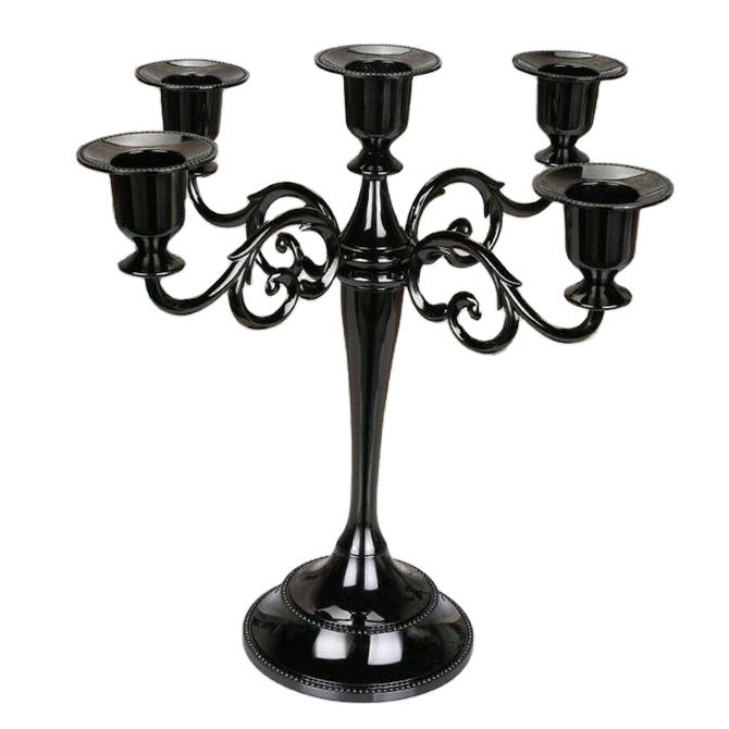 เชิงเทียนคริสตัล5แขนทำด้วยมือสไตล์อินเดียเชิงเทียนอลูมิเนียมโลหะเคลือบสีดำปรับขนาดได้ตกแต่งโต๊ะงานแต่งงาน