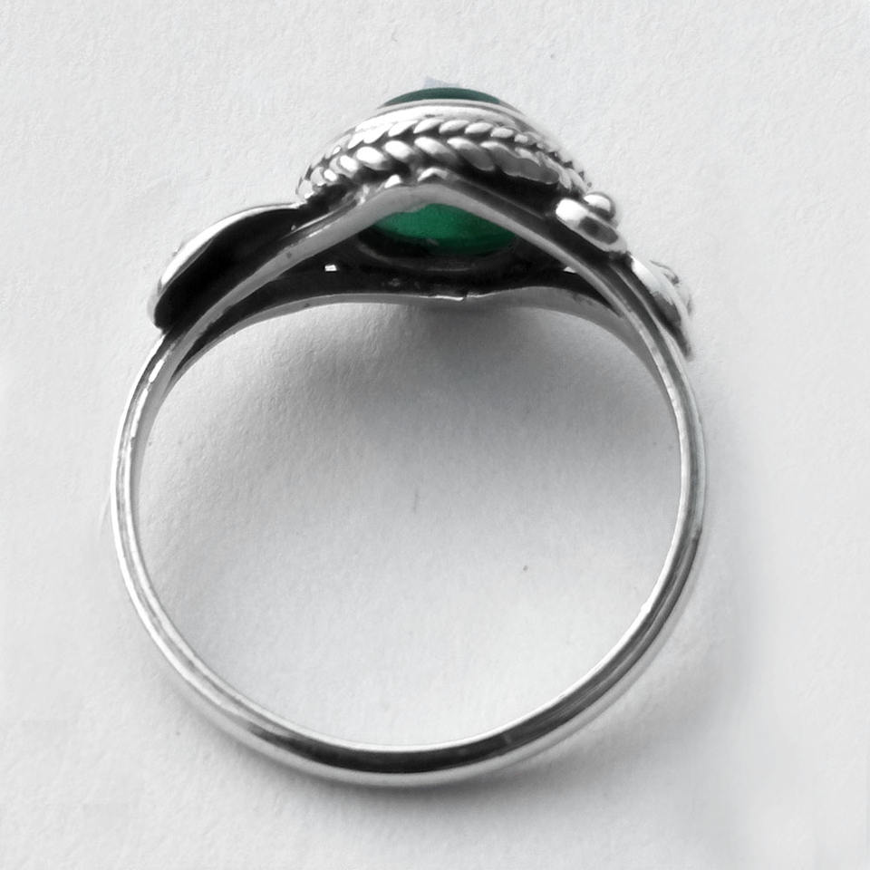 แหวนเงินสเตอร์ลิงทำมือ925อินเดียฝังพลอยโอนิกซ์สีเขียวฝังหนามเตยสำหรับวันเกิดและงานแต่งงานของผู้หญิง
