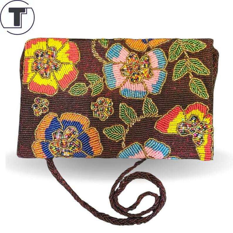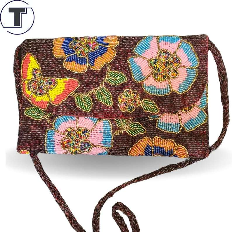 กระเป๋าบาแก็ตประดับลูกปัดทำด้วยมืออินเดียพร้อมที่จับกระเป๋าถือแบบสบายๆหลากสีทำด้วยมือโดยช่างฝีมือท้องถิ่น