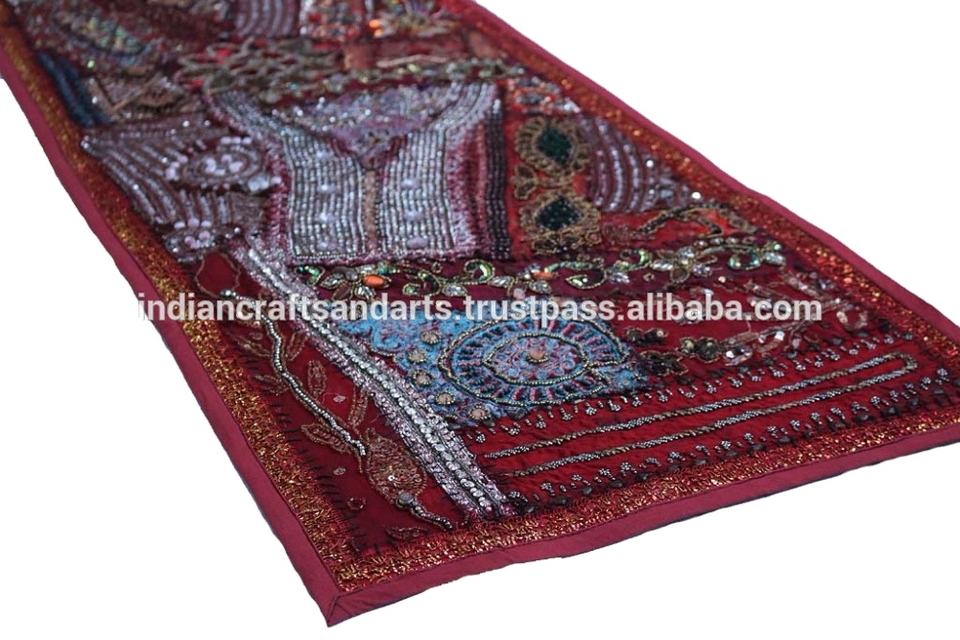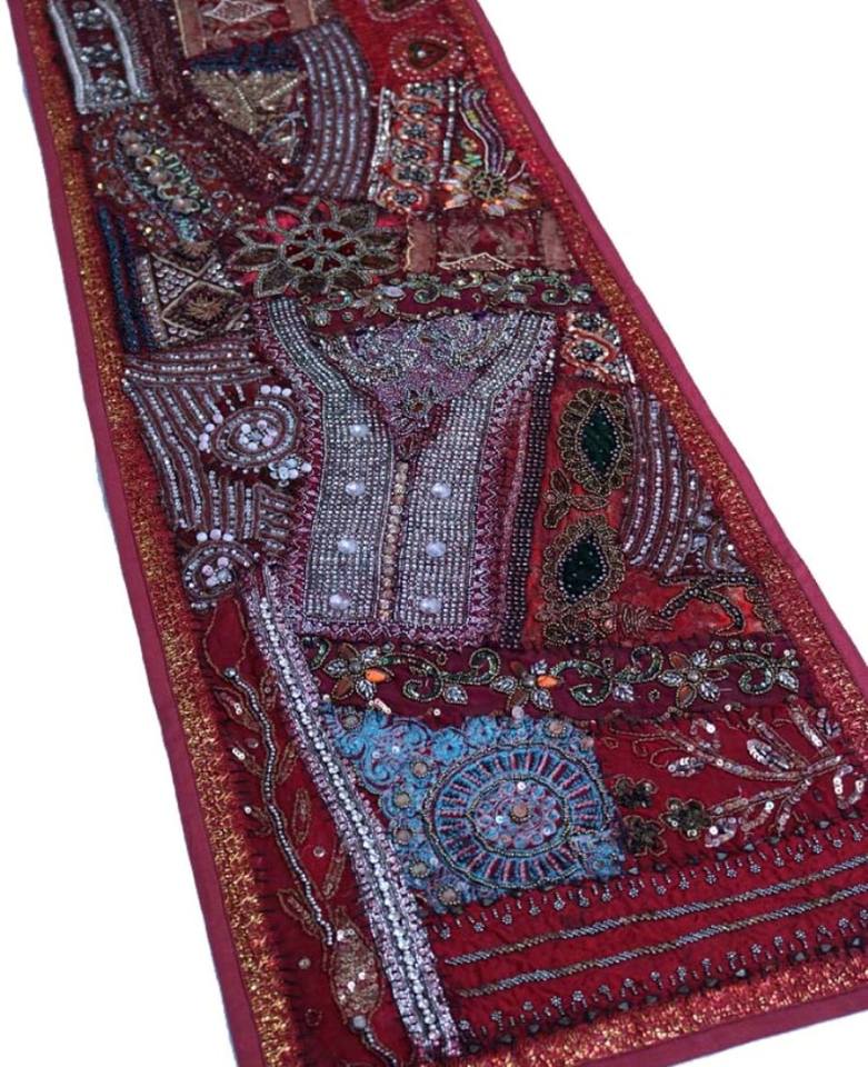ผ้าปูโต๊ะ/ผ้าแขวนผนังสไตล์โบฮีเมียน งานฝีมืออินเดีย ตกแต่งด้วยลูกปัดและผ้าปะติดปะต่อ ทำจากผ้าฝ้าย สไตล์ฮิปปี้