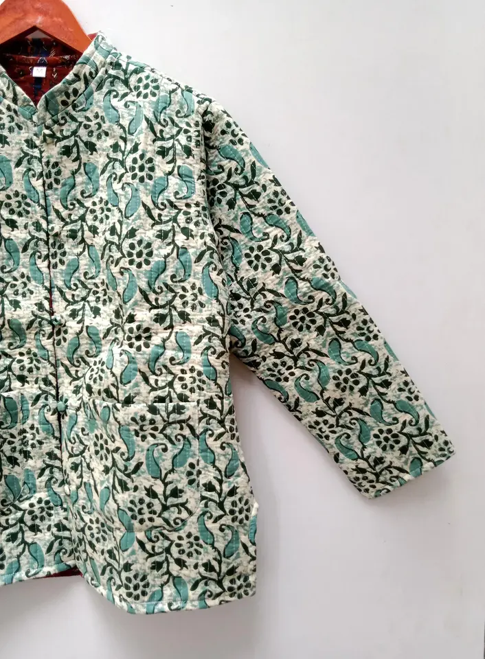 แจ็คเก็ตผ้าฝ้ายสไตล์โบฮีเมียนทำด้วยมือสไตล์อินเดียแบบกลับด้านได้สำหรับผู้หญิงเสื้อผ้าวินเทจพิมพ์ลายแถบ