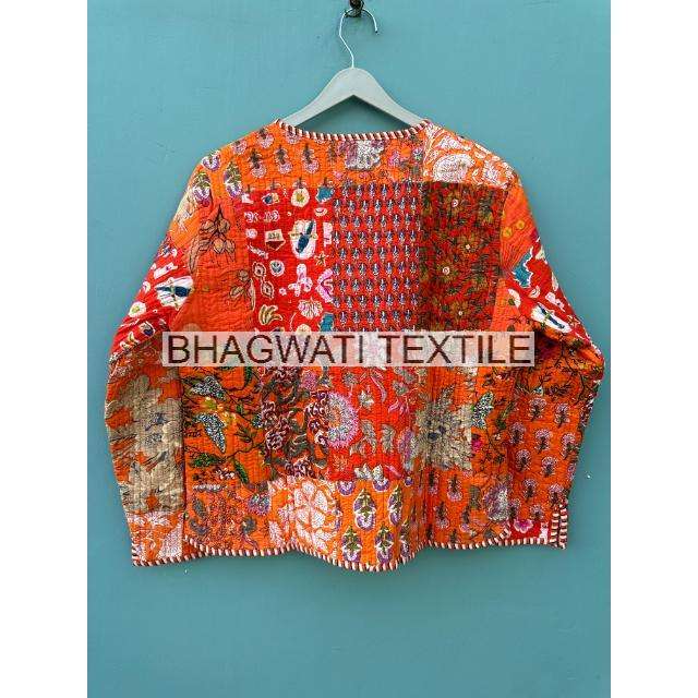 เสื้อแจ็กเก็ตผ้าฝ้ายโบฮีเมียนทำด้วยมือสไตล์วินเทจใหม่เสื้อโค้ทพิมพ์ลายทางสีส้มปักสั้นฤดูใบไม้ร่วง