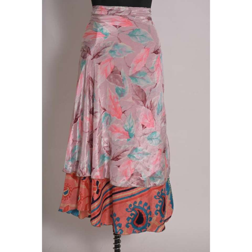 กระโปรงคลุมโบโฮทำด้วยมือสไตล์อินเดียผ้าไหมส่าหรีสองชั้นสไตล์ยิปซีแบบกลับด้านได้