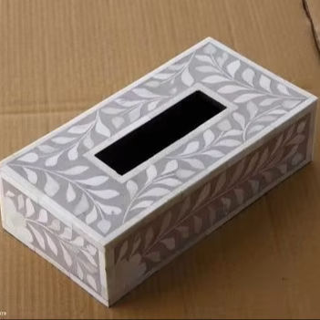 กล่องใส่กระดาษทิชชูลายดอกไม้ฝังกระดูกทำมือจากอินเดีย คุณภาพดีเยี่ยม เหมาะสำหรับบ้าน สำนักงาน หรือร้านอาหาร สินค้าใหม่จากอินเดีย