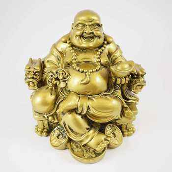 รูปปั้นพระพุทธรูปหัวเราะทำมือจากทองเหลืองอินเดีย ขายส่งสำหรับตกแต่งบ้าน สำนักงาน โต๊ะทำงาน หรือมณฑิร และเป็นของขวัญพิเศษ