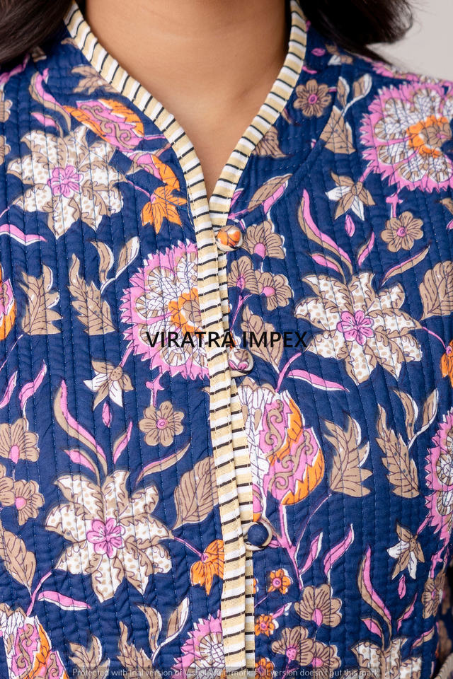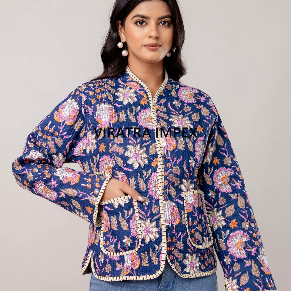 เสื้อแจ็กเก็ตมีกระดุมพิมพ์ลายดอกไม้สไตล์โบฮีเมียนทำมือสไตล์อินเดีย