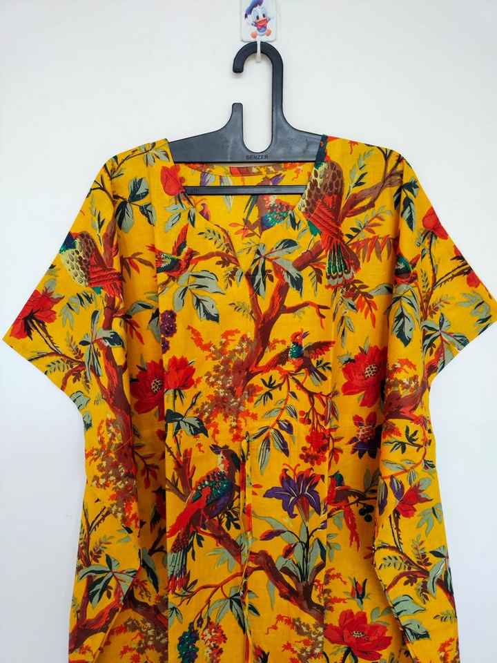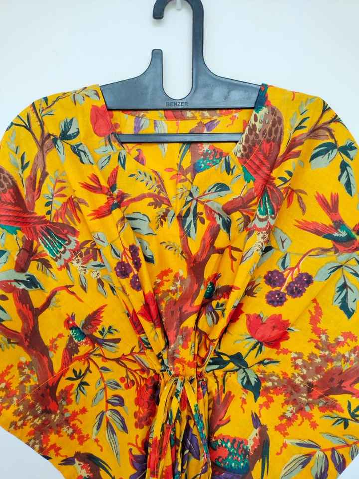 ชุดคาฟตันผ้าฝ้ายทำมือจากอินเดีย ลายพิมพ์นก ชุดคลุมกิโมโนน้ำหนักเบา