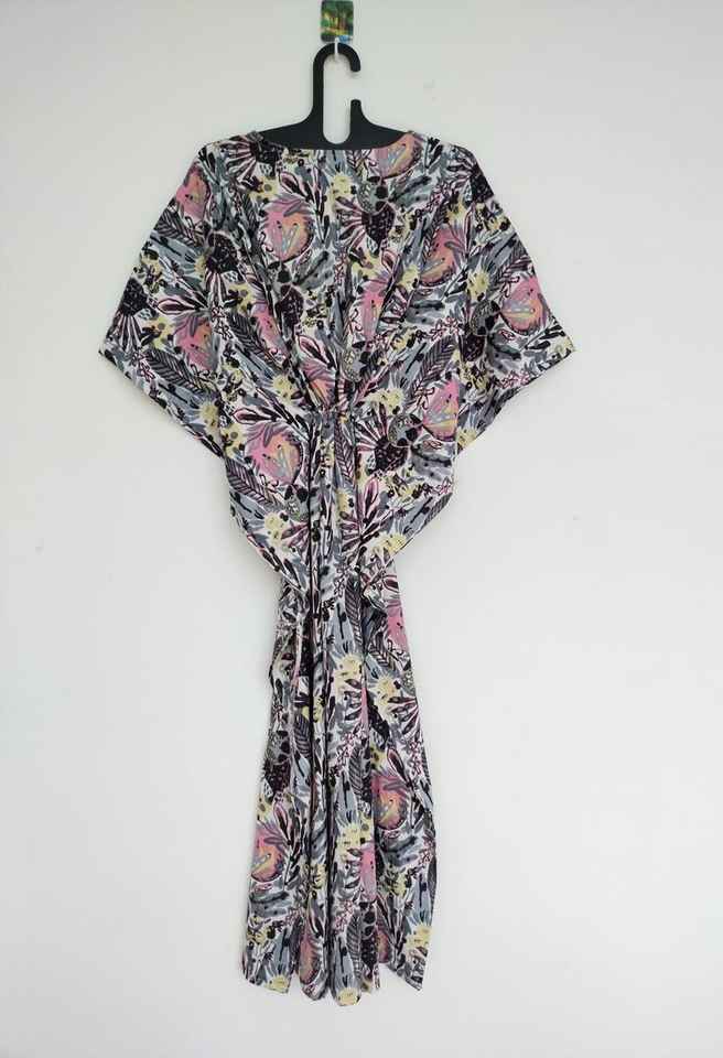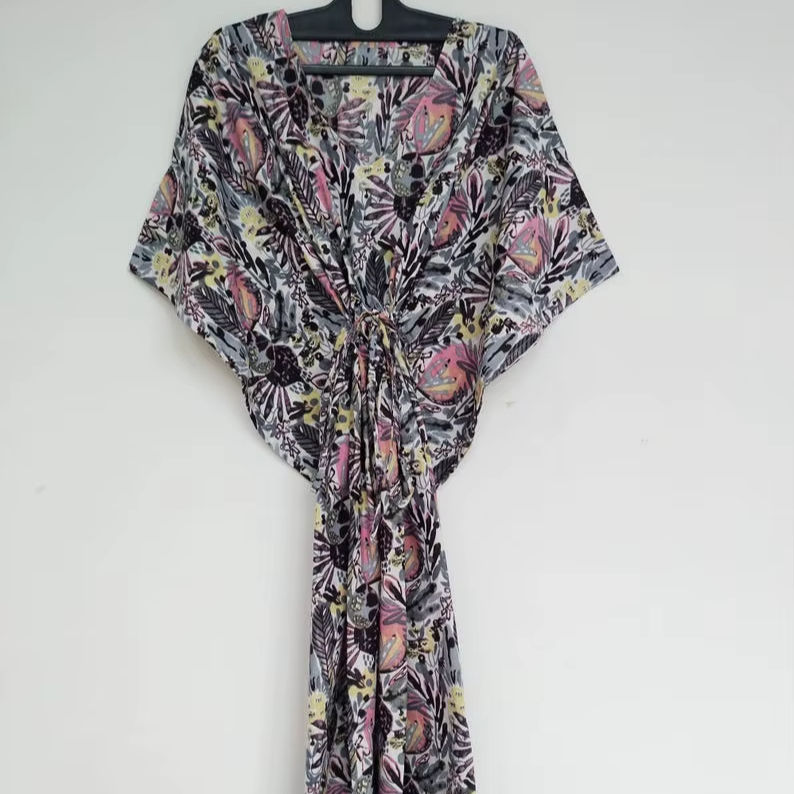 ชุดคาฟตันผ้าฝ้ายทำมือจากอินเดีย สีเหลือง น้ำหนักเบา เหมาะสำหรับใส่คลุมชุดไปทะเลในช่วงฤดูร้อน