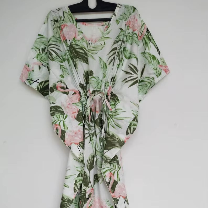 ชุดคาฟตันผ้าฝ้ายทำมือจากอินเดีย น้ำหนักเบา สวมคลุมชายหาด สไตล์กิโมโน