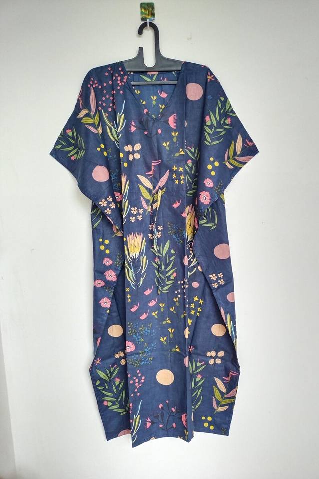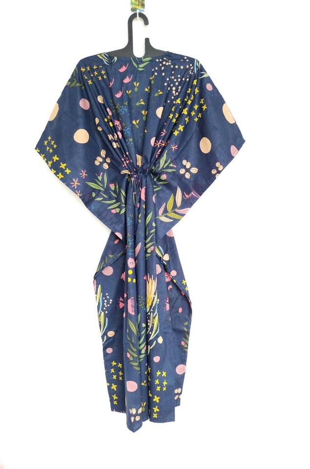 ชุดคาฟตันผ้าฝ้ายทำมือจากอินเดีย สีเหลือง น้ำหนักเบา เหมาะสำหรับใส่คลุมชุดไปทะเลในช่วงฤดูร้อน