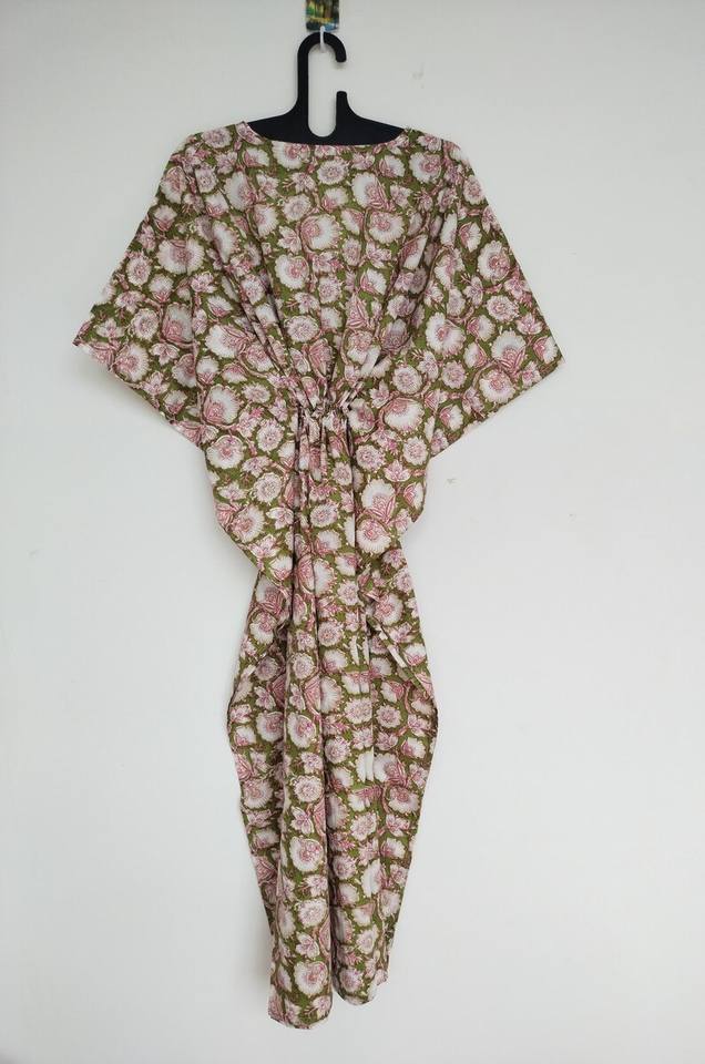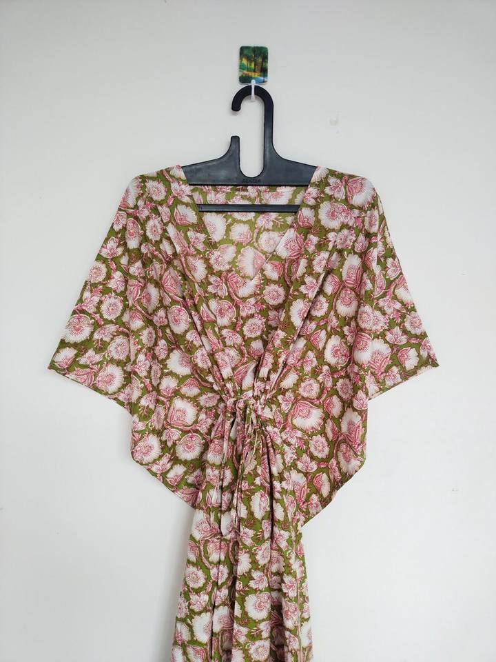 ชุดคาฟตันผ้าฝ้ายทำมือจากอินเดีย สีเหลือง น้ำหนักเบา เหมาะสำหรับใส่คลุมชุดไปทะเลในช่วงฤดูร้อน