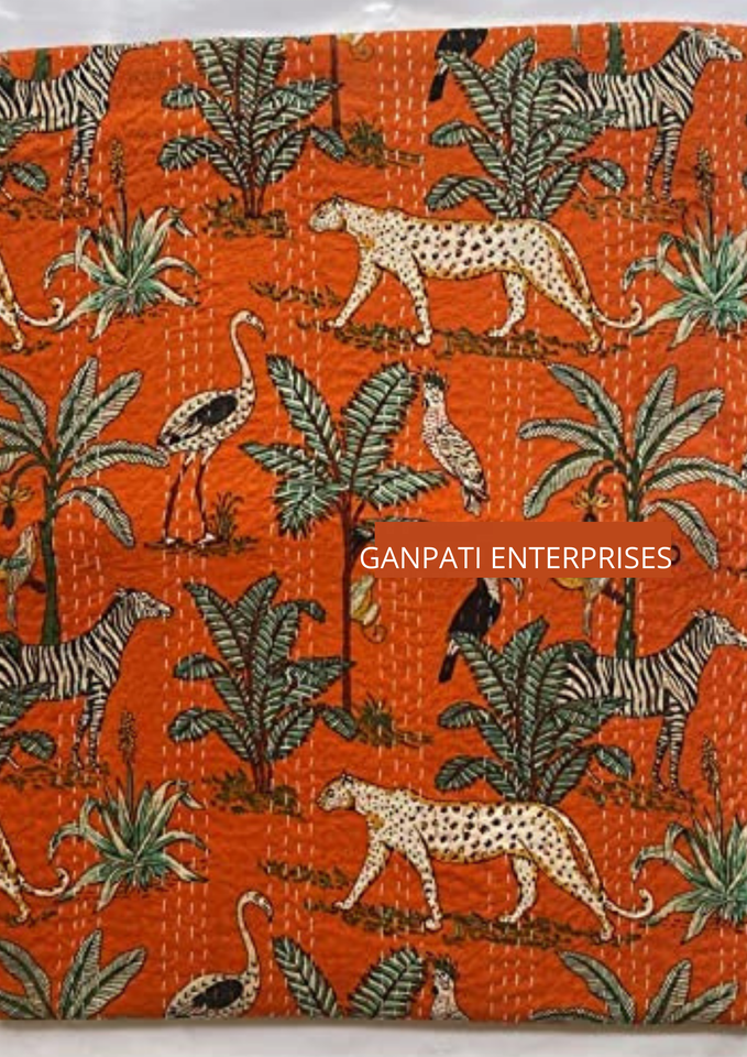 ผ้าควิลท์ผ้าฝ้ายทำมือแบบอินเดียใช้ในโรงแรมสามารถซักได้พิมพ์ลายเสือแบบกลับด้านได้