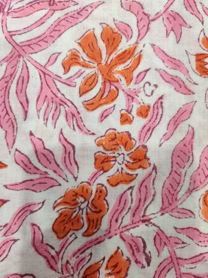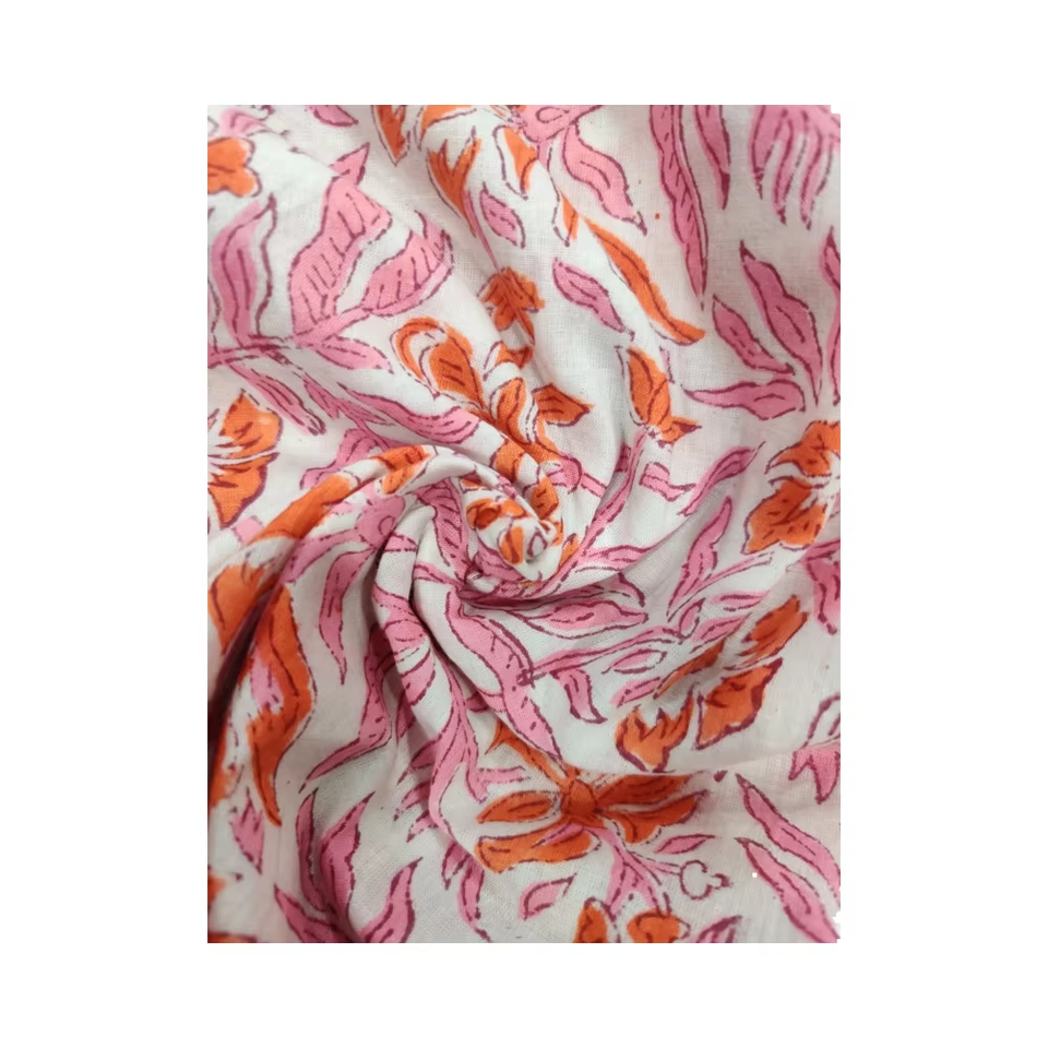 Indian Handmade Cotton Linen Fabric with Hand Blocked Floral Print Embroidery Knitted Technics for Shirts and Dresses