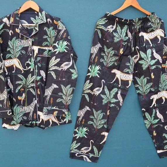 ชุดนอนผ้าฝ้ายพิมพ์ลายเพสลีย์สไตล์อินเดีย ทำมือ สำหรับฤดูหนาว หรูหรา สวมใส่สบายๆ ในยามเช้าหรือกลางคืน ดีไซน์เรียบหรู ระบายอากาศได้ดี แห้งเร็ว
