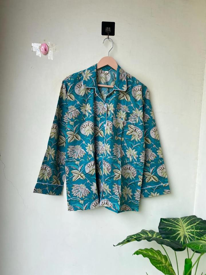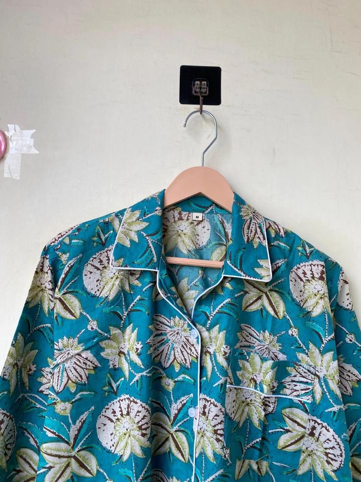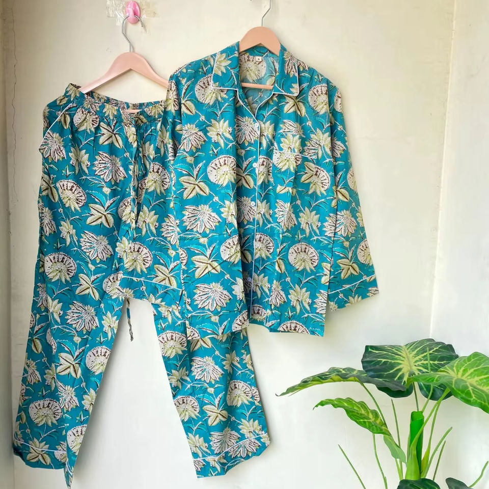 ชุดนอนผ้าฝ้ายทำมือสไตล์อินเดียชุดนอนผ้าฝ้ายเนื้อนุ่มพิมพ์ลายดอกไม้