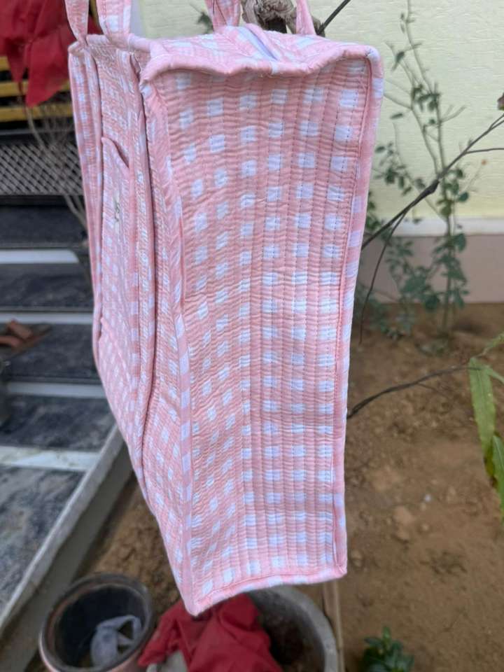 กระเป๋าผ้าฝ้ายทำมือจากอินเดีย ลายดอกไม้ พิมพ์ลายสองด้าน ใช้ได้ทั้งไปทะเลและซื้อของชำ พร้อมบริการสกรีนโลโก้ตามสั่ง