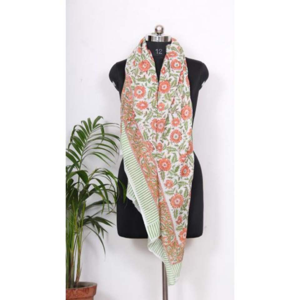 ผ้าพันคอ/ผ้าปาเรโอทำมือจากอินเดีย ผ้าฝ้ายพิมพ์ลายดอกไม้ดิจิทัลสำหรับผู้หญิง เนื้อผ้านุ่มระบายอากาศได้ดี เหมาะสำหรับใส่ในฤดูหนาว ใช้ได้ทุกวัน ผ้าพันคอตกแต่งแบบดูปัตตา