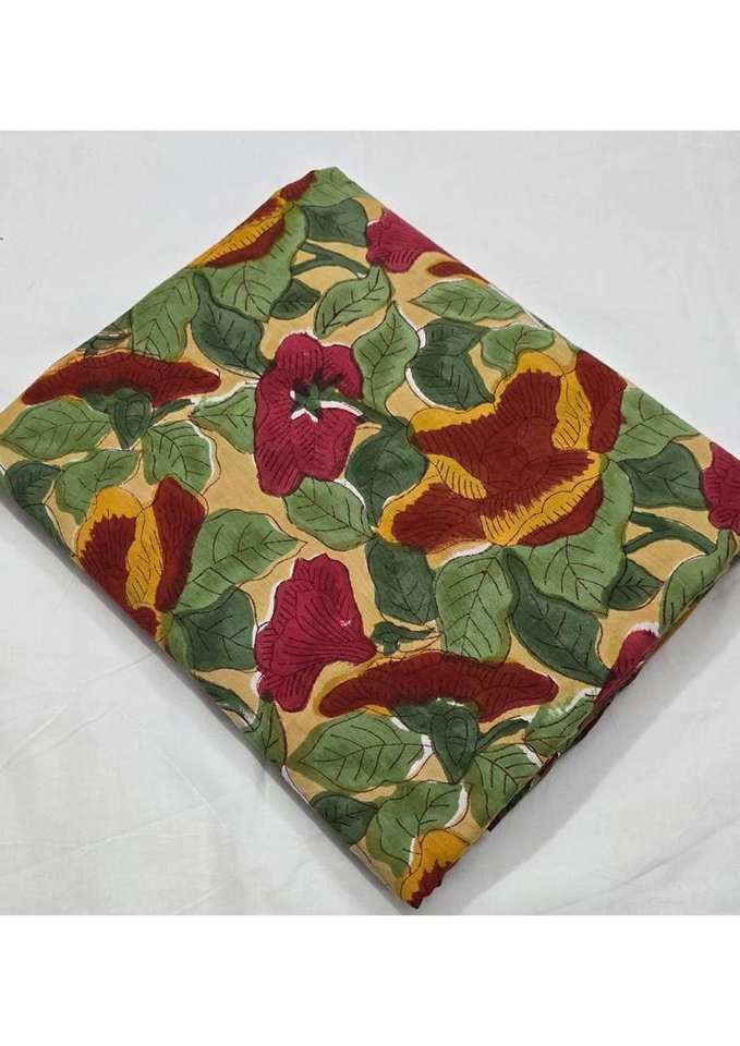 ผ้าฝ้ายออร์แกนิคทำมือจากอินเดีย เป็นมิตรกับสิ่งแวดล้อม น้ำหนักปานกลาง 90 GSM ผ้าพิมพ์ลายดอกไม้แบบบล็อกพิมพ์ สำหรับทำผ้าม่าน ผ้าคลุมเสื้อ หรืองานตัดเย็บอื่นๆ