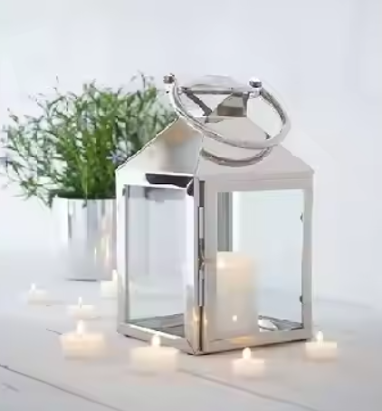 โคมไฟโลหะกรอบแก้วพิมพ์อักษรทรงสี่เหลี่ยมทำด้วยมือสีเงินมันวาวสุดพิเศษของอินเดียสำหรับตกแต่งบ้าน