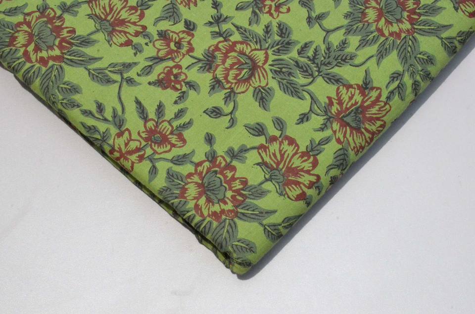 ผ้าฝ้ายพิมพ์ลายดอกไม้สีเขียวแบบอินเดีย น้ำหนักเบา ผลิตจากวัสดุธรรมชาติ เหมาะสำหรับทำเสื้อผ้า ของตกแต่งบ้าน และอื่นๆ อีกมากมาย
